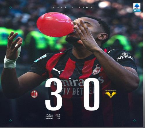 北京时间12月28日19:30,意甲联赛第17轮,AC米兰坐镇主场迎战维罗纳。上半场,双方机会寥寥,半场补时阶段,普利西奇破门!下半场,恩昆库双响!最终,AC米兰3-0完胜维罗纳。